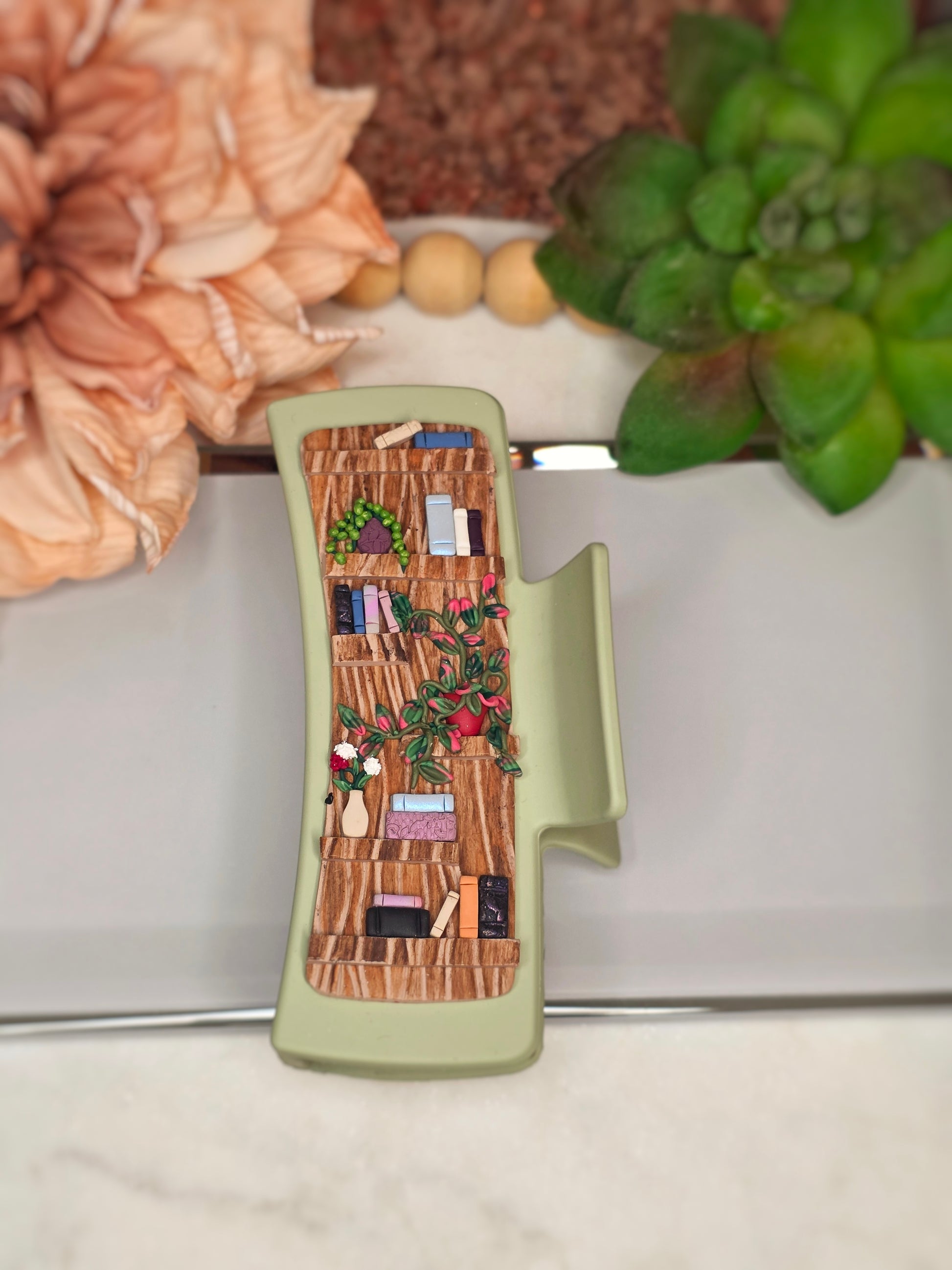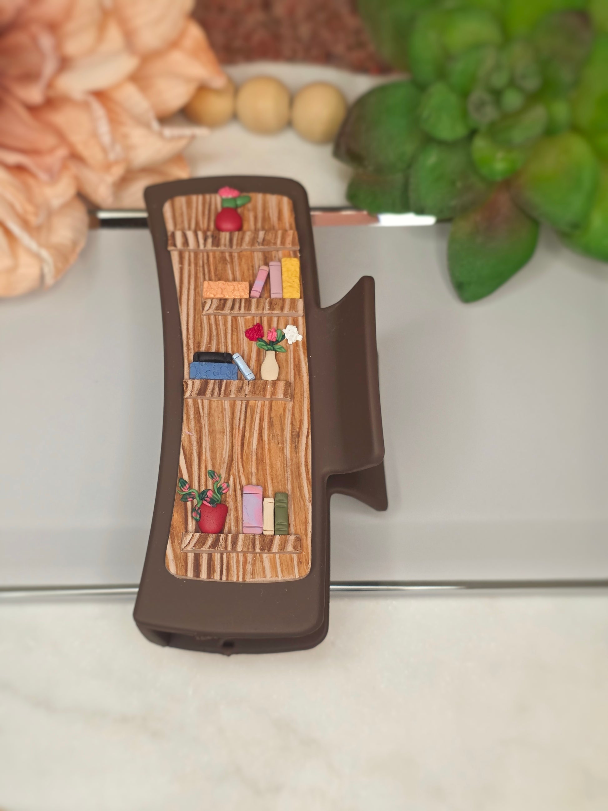 Calling all book lovers! 📚✨ Keep your hair perfectly in place and showcase your passion for reading with our charming Bookshelf Hair Claw. This unique and whimsical accessory is like a miniature library for your hair!