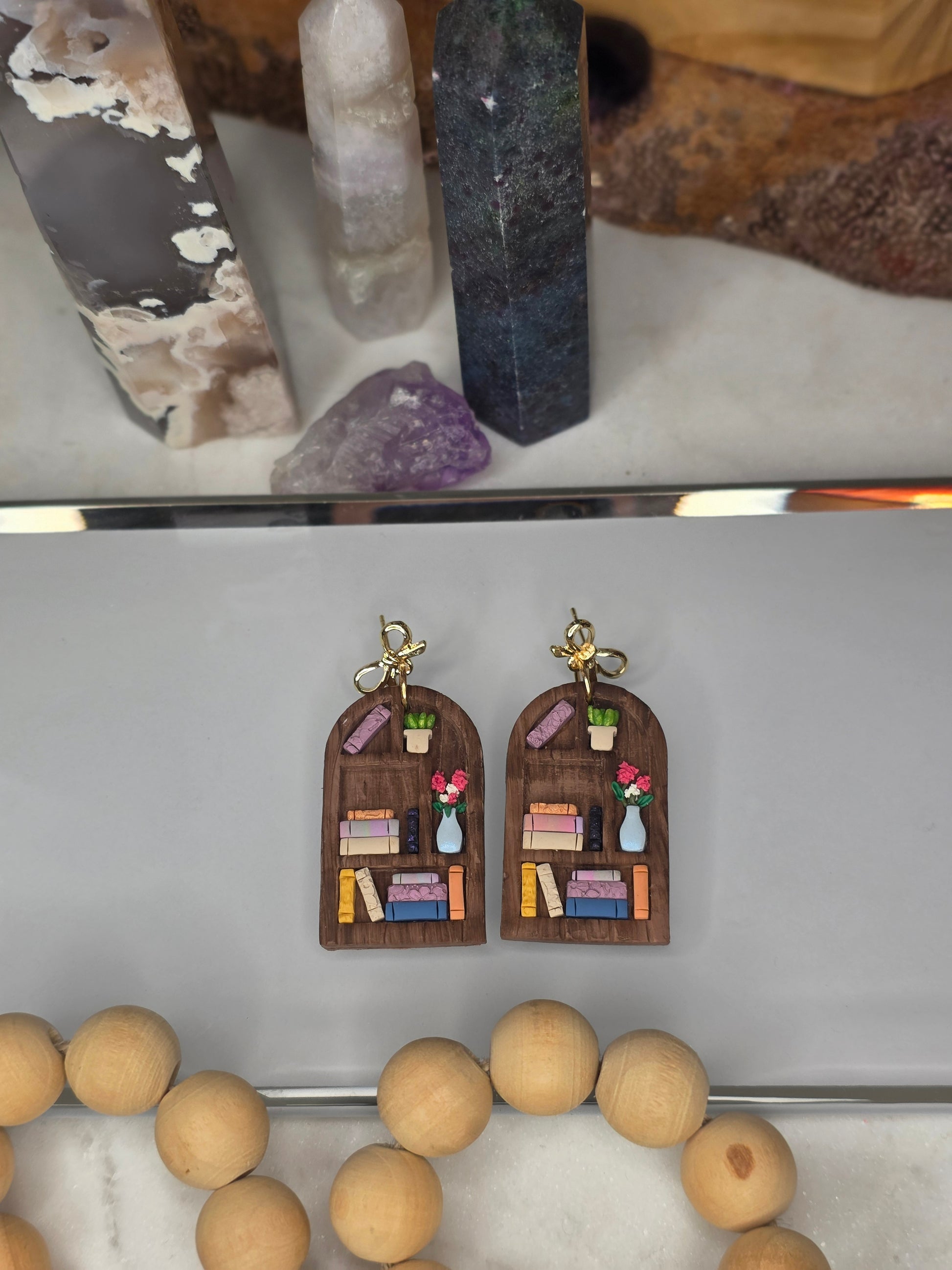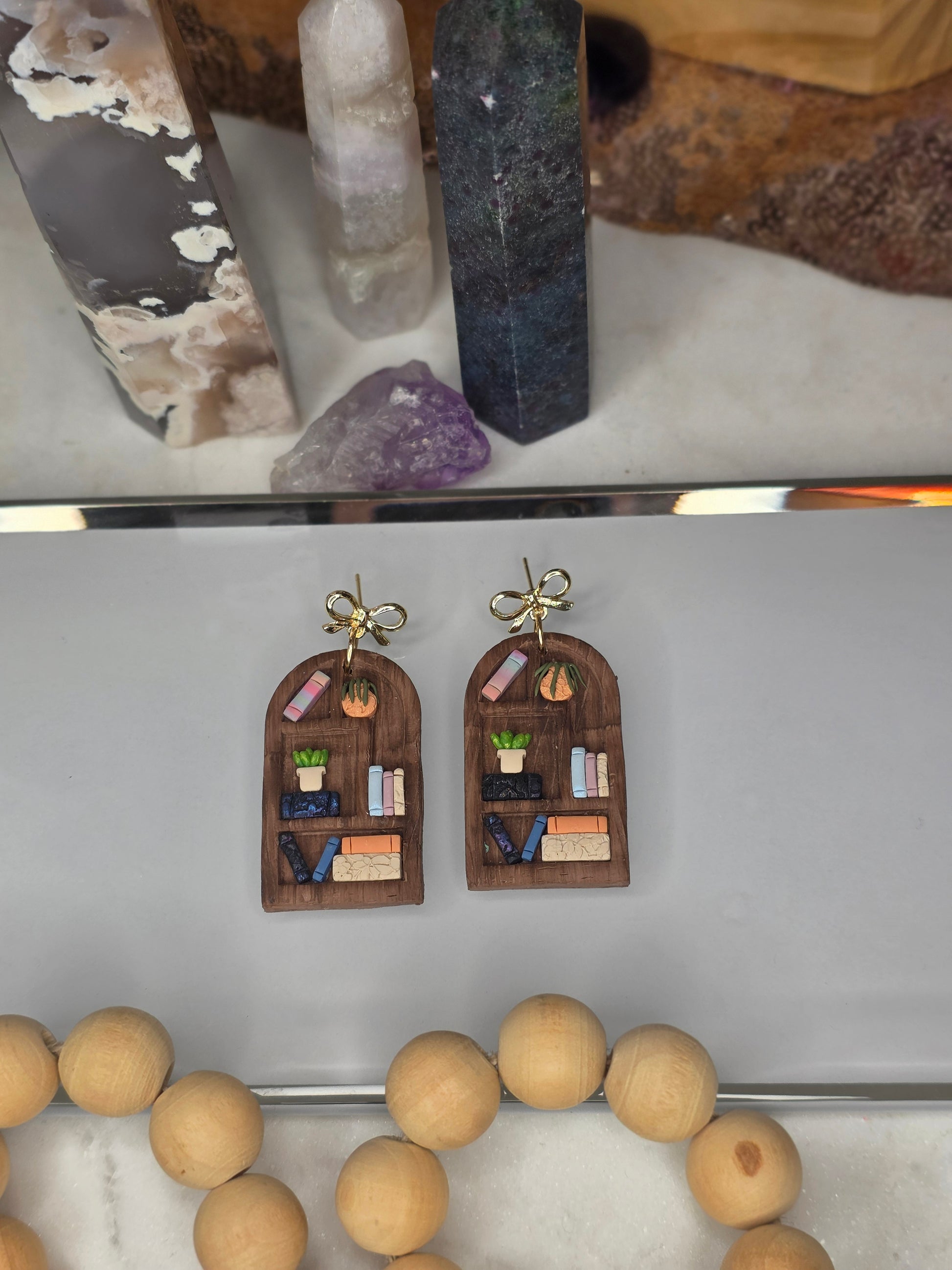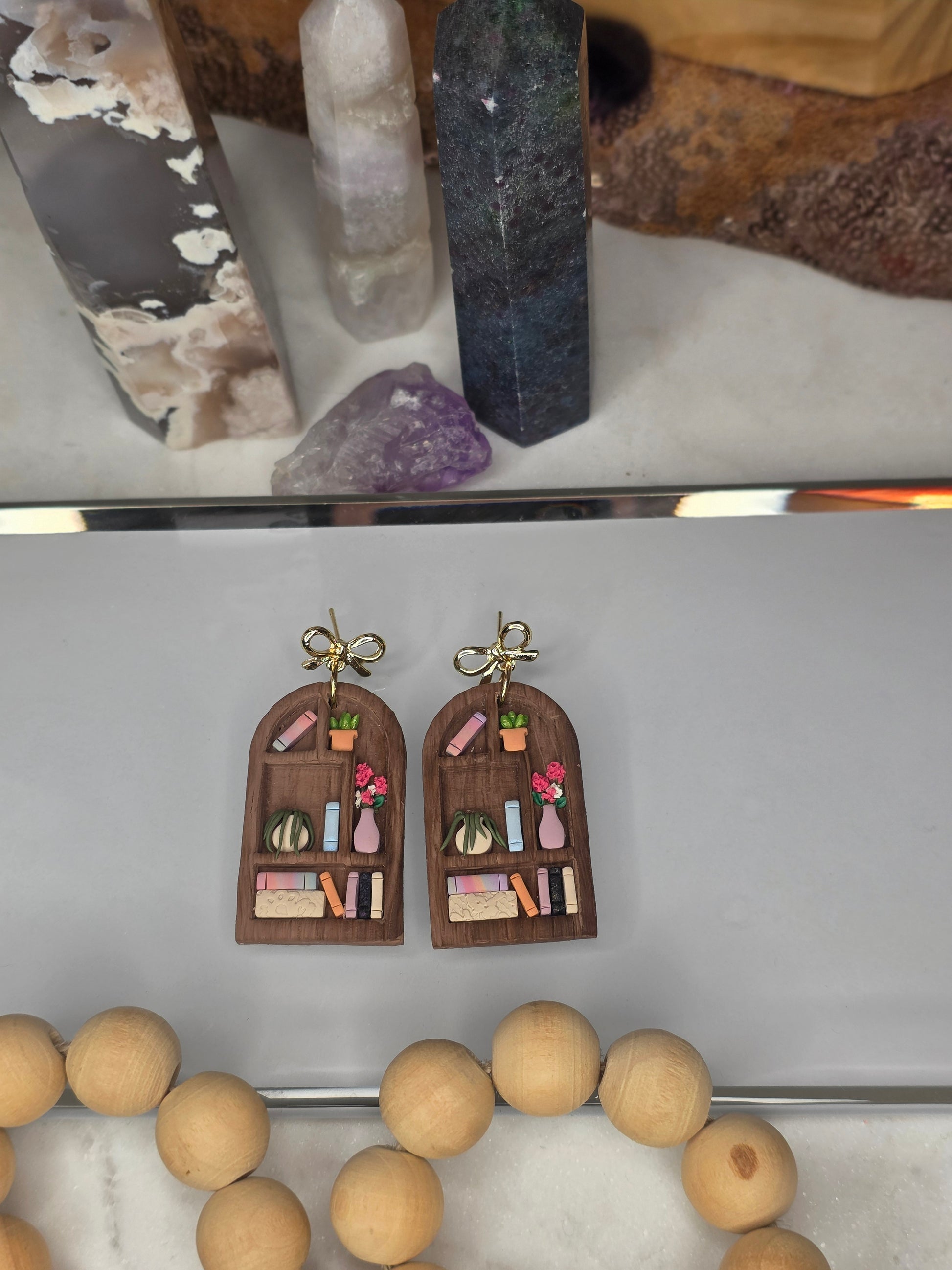Curate your style with our "Arched Bookshelf" earrings! These delightful earrings feature a classic arched bookshelf design, complete with an array of tiny, colorful books and a charming potted plant. Each pair is handcrafted from lightweight polymer clay, making them the perfect way to carry your love for reading with you. Whether you're a student, a librarian, or just a lifelong bookworm, these earrings are a stylish way to celebrate your passion.