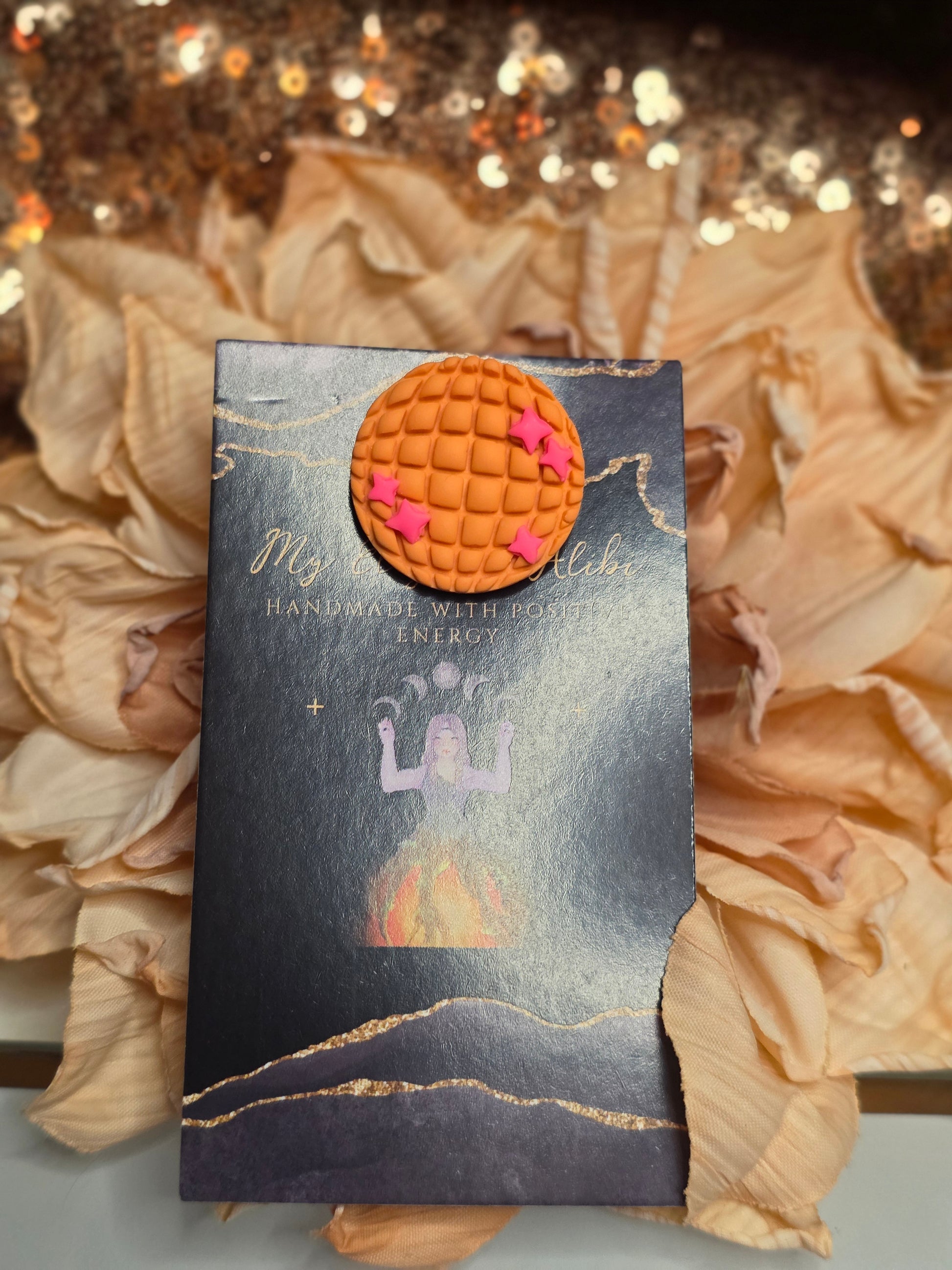 Slowly and carefully crafted from high-quality polymer clay, this isn't just a shoe charm—it's a miniature statement piece. It features a fun, retro-inspired design that looks like a groovy disco ball or a funky waffle. The warm orange disc has a classic waffle-grid texture and is topped with bright pink stars, making it perfect for adding a touch of 70s disco fun or breakfast-time whimsy to your look.