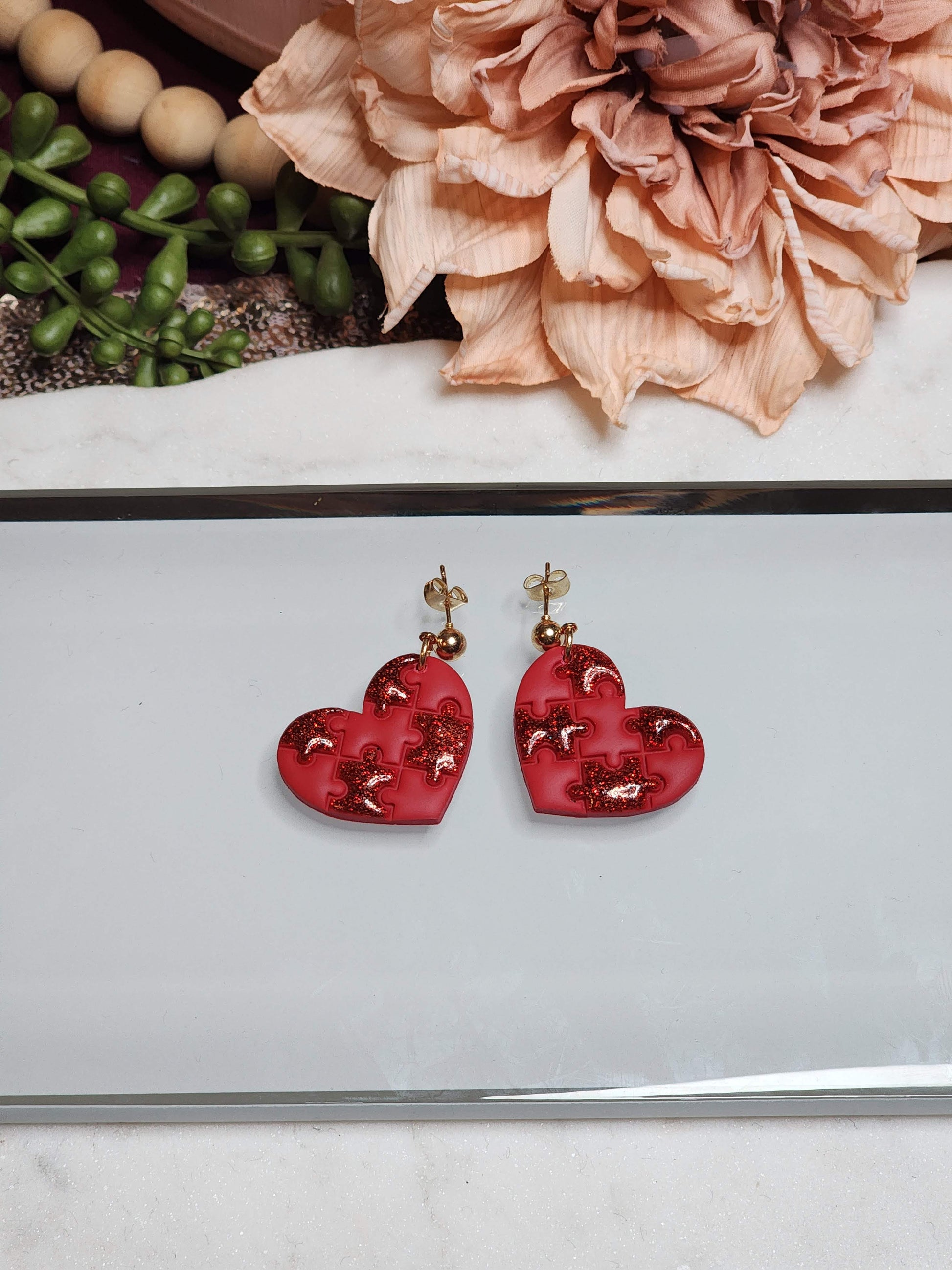Celebrate love in all its forms with our enchanting collection of romantic dangle earrings. Handcrafted from lightweight polymer clay, this collection features a variety of lovely designs, from sparkling puzzle-piece hearts and charming heart hoops to Parisian Eiffel Towers. Each pair is designed to add a touch of sweetness and romance to your look.