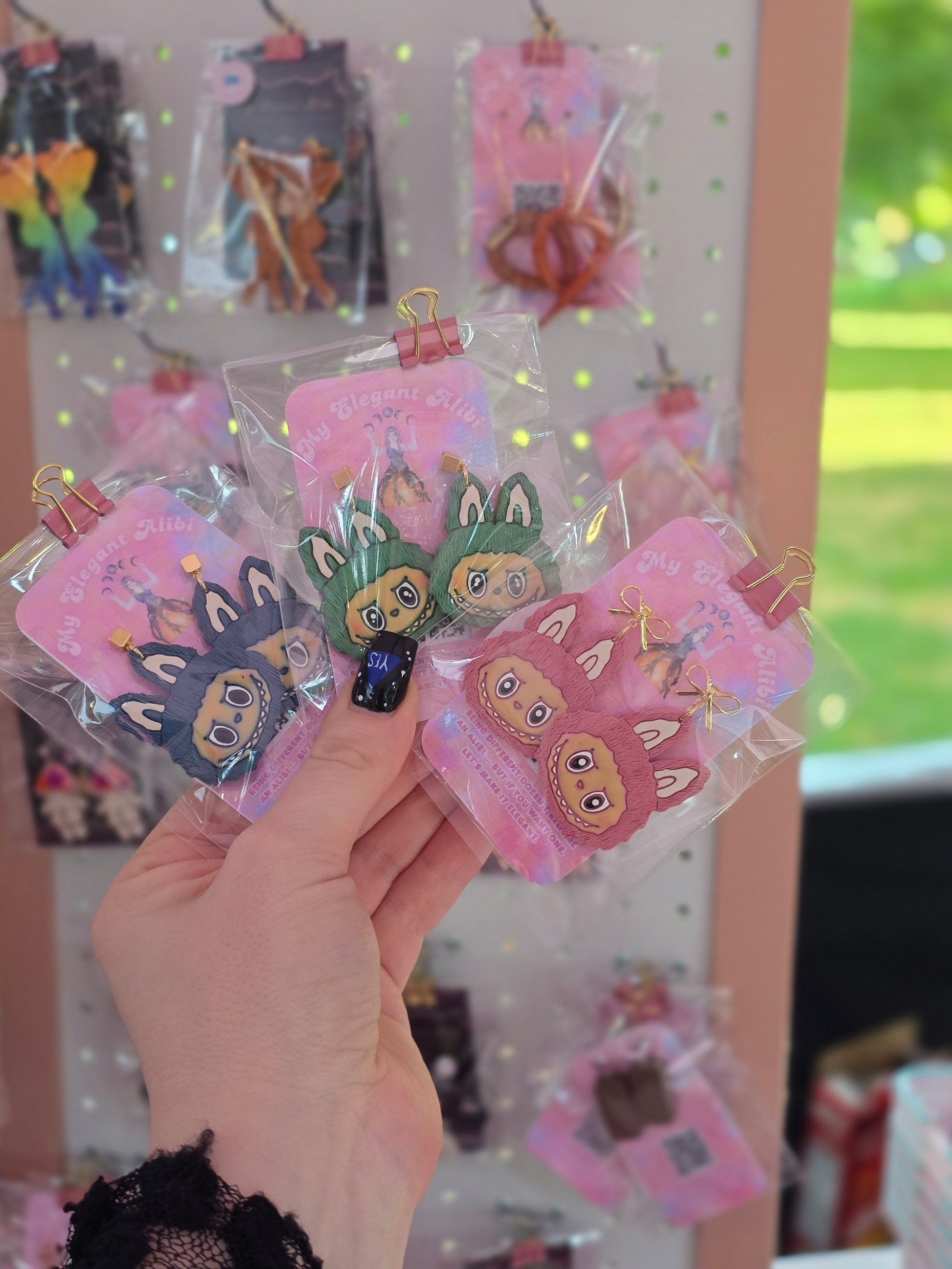 Ready to cause some trouble? 😉 Unleash your playful side with these super cute Labubu-inspired dangles! Based on the famous monster elf from Pop Mart, each earring is handcrafted with a unique, touchable texture that brings your favorite art toy to life. They're lightweight, full of personality, and the perfect way to show off your collector style.