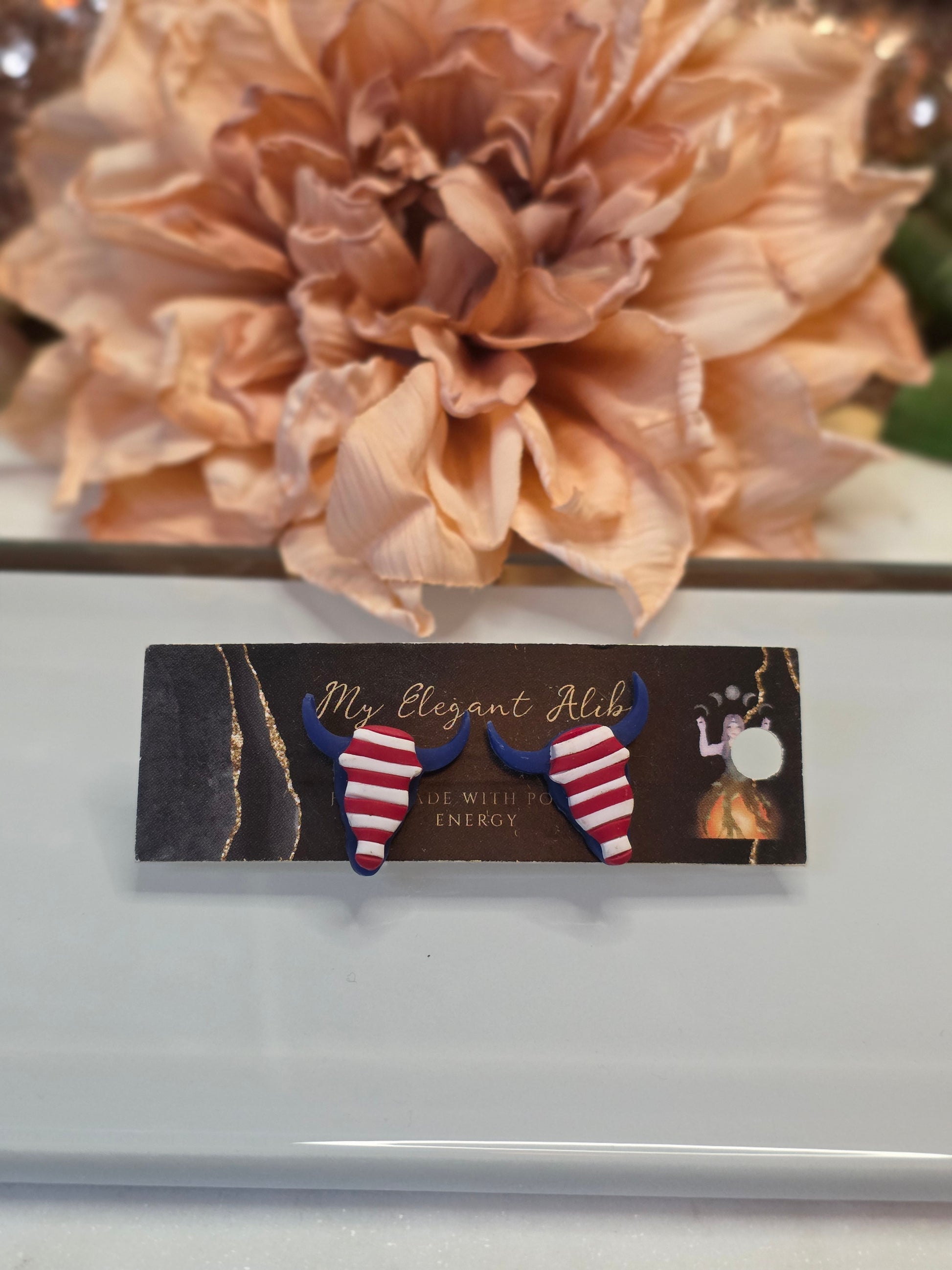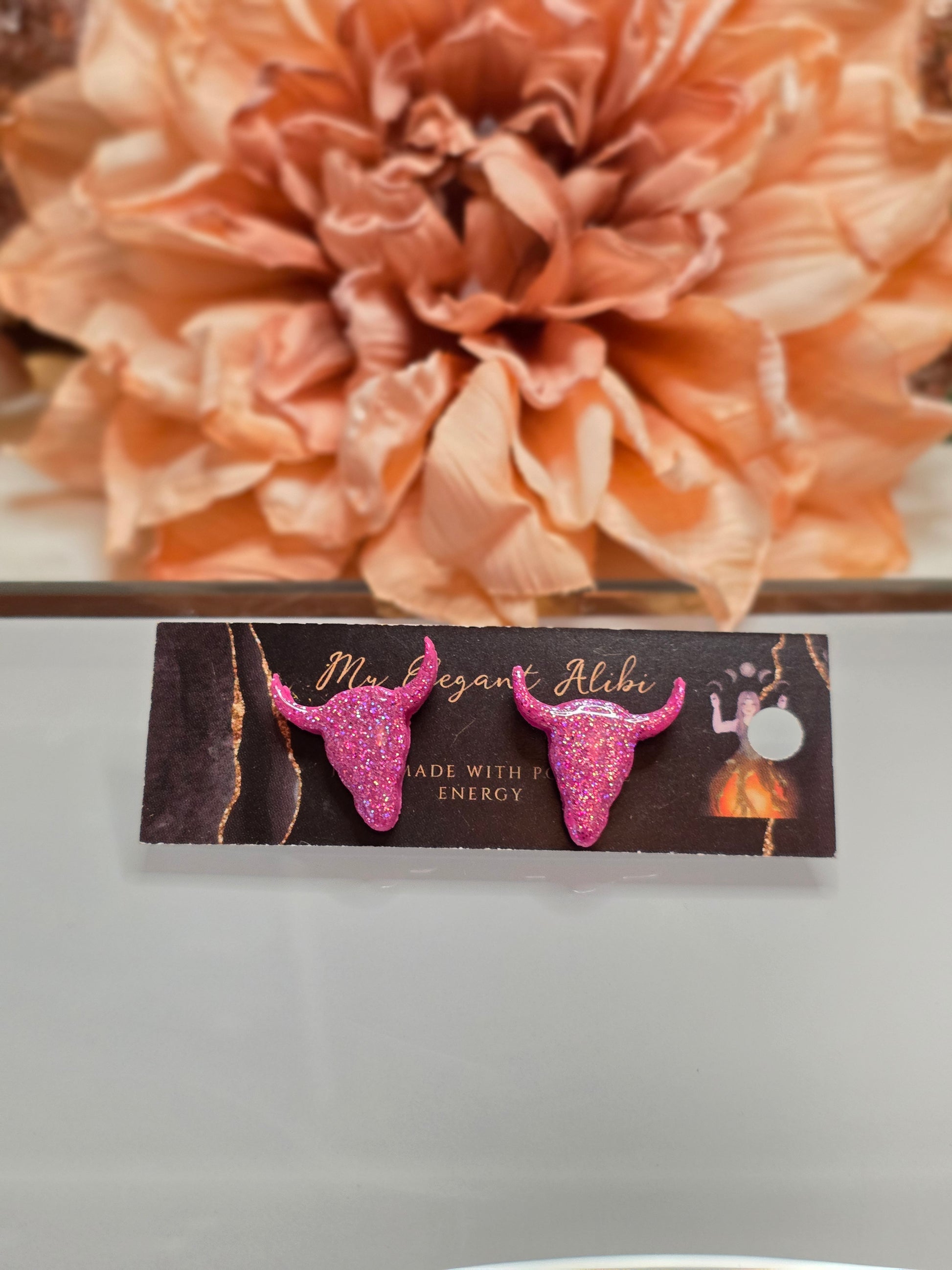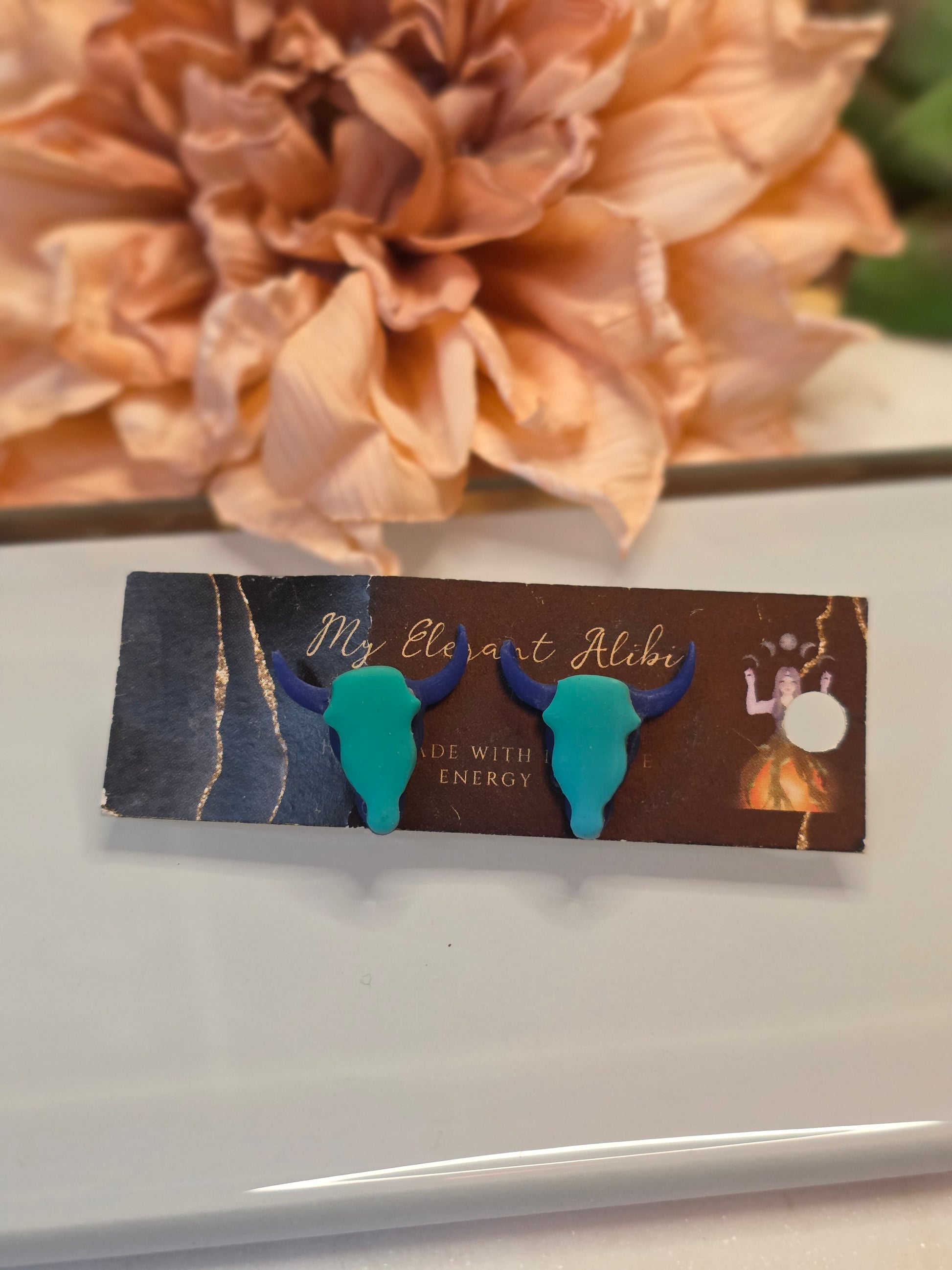 Embrace your rustic side with these striking bull skull stud earrings. Handmade from lightweight polymer clay, these earrings are perfect for adding a touch of Western or boho flair to any outfit. Available in a variety of unique color and design combinations to match your personal style.