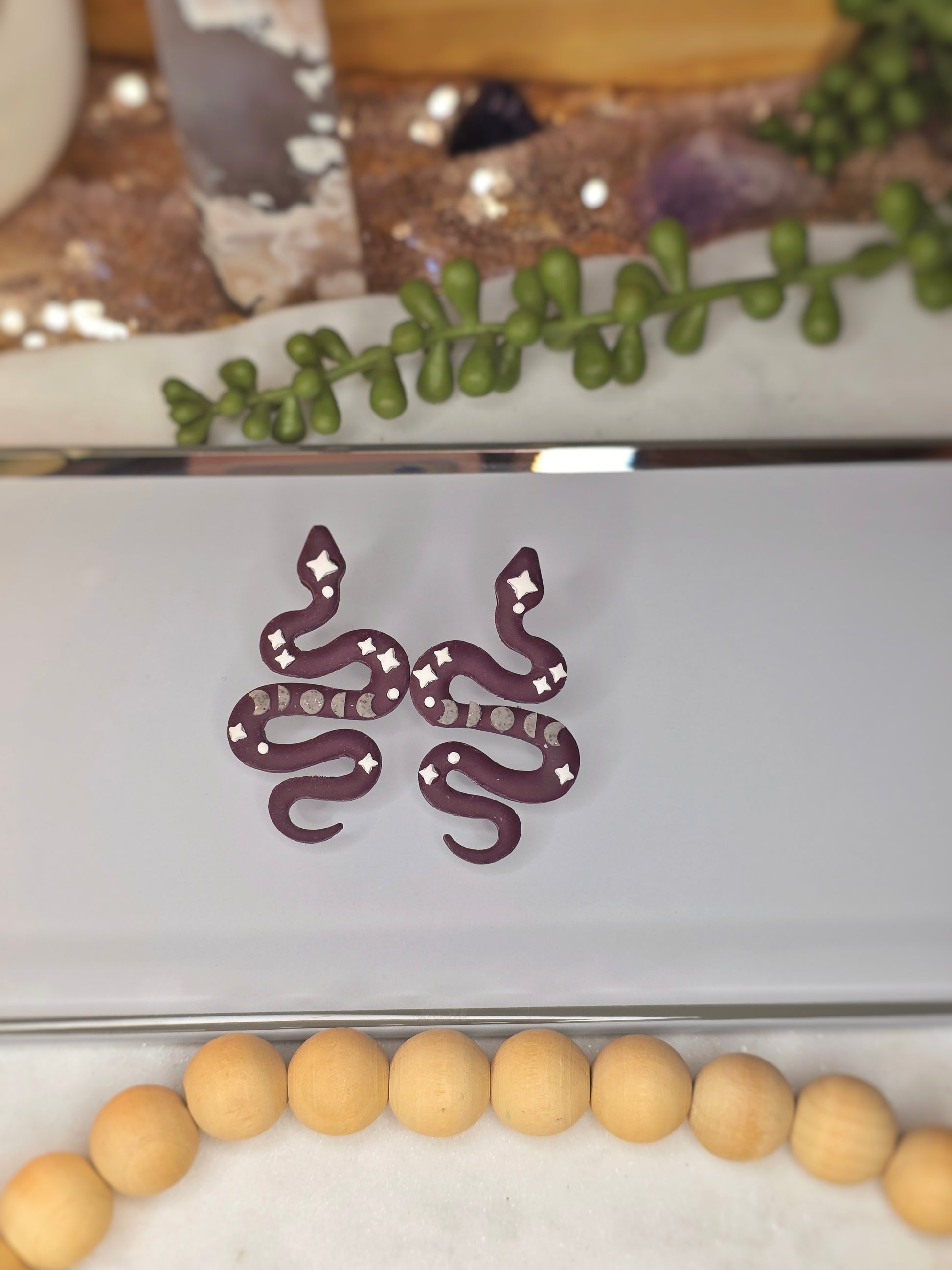 Handcrafted from lightweight polymer clay, these slithering serpents are available in a variety of hypnotic colors and finishes, from bold glitter to mesmerizing marble.